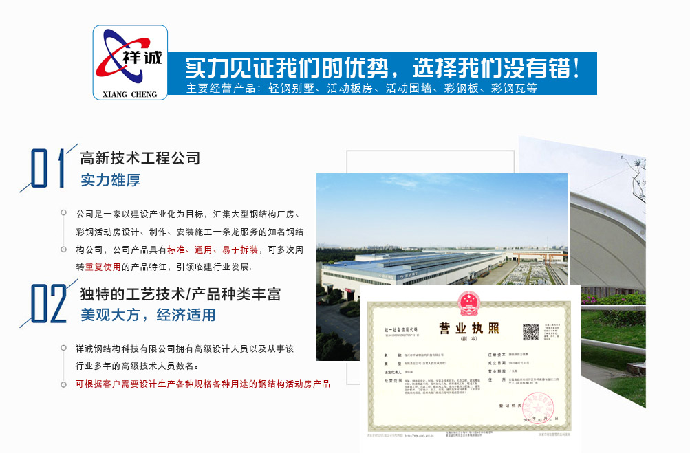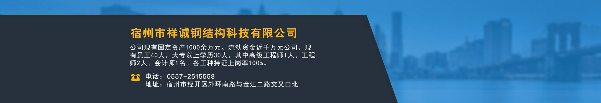 宿州市祥誠(chéng)鋼結(jié)構(gòu)科技有限公司位于宿州市經(jīng)開區(qū)外環(huán)南路與金江二路交叉口北,公司是一家以建設(shè)產(chǎn)業(yè)化為目標(biāo),匯集大型鋼結(jié)構(gòu)廠房、彩鋼活動(dòng)房設(shè)計(jì)、制作、安裝施工一條龍服務(wù)的知名鋼結(jié)構(gòu)公司。公司現(xiàn)有固定資產(chǎn)1000余萬(wàn)元、流動(dòng)資金近千萬(wàn)元公司?,F(xiàn)有員工40人,大專以上學(xué)歷30人,其中高級(jí)工程師1人、工程師2人、會(huì)計(jì)師1名。各工種持證上崗率100%。高效化的年青團(tuán)隊(duì)為公司帶來(lái)了蓬勃發(fā)展的動(dòng)力,全體員工以務(wù)實(shí)的態(tài)度,拼搏的精神,創(chuàng)造著企業(yè)的每一天。 公司組織結(jié)構(gòu)嚴(yán)格按現(xiàn)代企業(yè)制度設(shè)計(jì),管理機(jī)構(gòu)設(shè)置合理,制度完善,各部門分工明確...